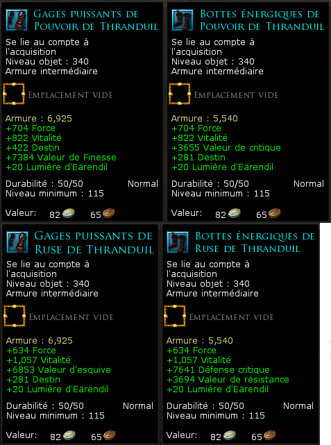 Si vous voulez passer sur les autres équipements de niveau 115 :