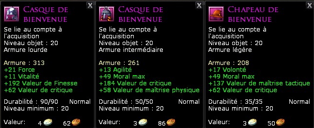 - Casque de bienvenue (lourd) / Casque de bienvenue (intermédiaire) / Chapeau de bienvenue