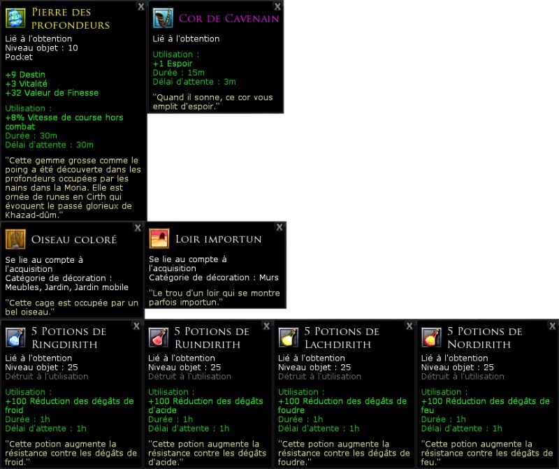 - Pour recevoir votre récompense, donnez votre pièce d'ithildin (au choix)
