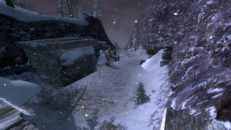 Situé officiellement à 27.7S, 4.4E cet endroit porte parfaitement son nom en Sindarin. En effet il s'agit du point culminant du chemin reliant les Monts des géants avec le Sud du haut col. De plus, comme vous le voyez sur la photo, ce passage est pratiquement toujours dans la brume ou la neige. De plus, il est habité par des géants. Bref un endroit charmant mais très pratique si on voyage dans le sud de la carte.