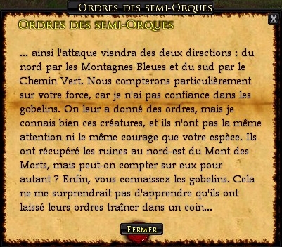 - Eliminez des semi-orques à Amon Firn et trouvez les ordres qu'ils pourraient porter (loot sur un semi-orque)