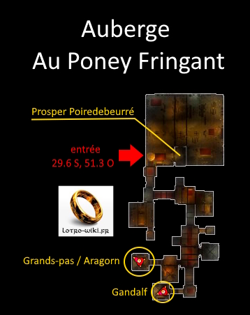Cette célèbre auberge situé à 29.6s, 51.2o dans le village de Bree. Lieu de rencontre RP pour les joueurs et endroit incontournable pour le livre épique ainsi que plusieurs série de quêtes.