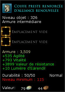 Si vous voulez passer sur les autres équipements de niveau 115 :