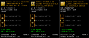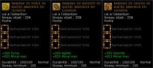 Les nouveaux équipements de la Mise à Jour 20 sont surtout les bijoux dorés à 3 emplacements (niveau 105), les objets de deuxième main dorés, les armures T2 du Trône du Seigneur de la Terreur qui passent à leur deuxième amélioration, et les capes bleues et dorées à 1 emplacement (niveau 105).