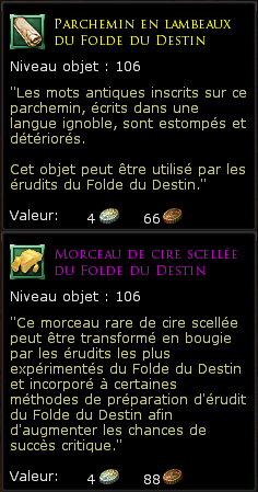 Un nouveau niveau d'artisanat a été ajouté, le Folde du Destin (T11). Avec lui viennent de nouveaux objets de classe, des consommables (nourriture, parchemins, spécifiques classe...), des armures, des secondes mains, des bijoux... il y a aussi des recettes journalières pour les Allégeances, les Cendres de Gorgoroth...