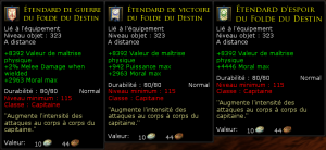 - les sets "Âge disparu", "Folde du destin", "Tours" et "Anciens" sont des sets offensifs, avec des valeurs secondaires de Finesse, Critique et Maîtrise physique ou tactique.