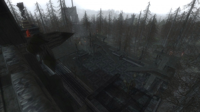 Je confirme ce terrain est super moche, notamment à cause du Cargul que l'on voit à gauche de l'image. Cette construction se situe officiellement à 12.1S, 45.5O et est super dangereuse quand on s'y ballade avec un perso du niveau de la zone. Encore un endroit avec des trucs à cramer ou à découper en tranche. Non... décidément, LOTRO est un jeu très sain.