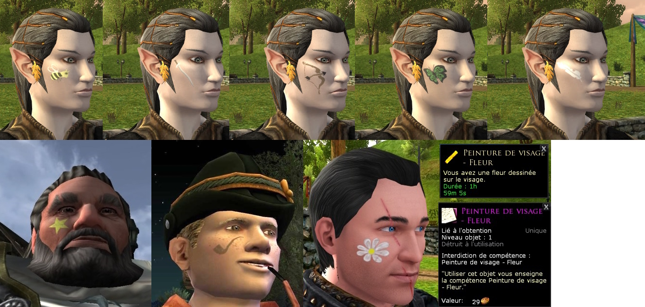 5 Jetons du Trésor enfoui (Détruit à l'utilisation / Pochoir en forme de plume permettant de vous appliquer de la peinture sur la joue)