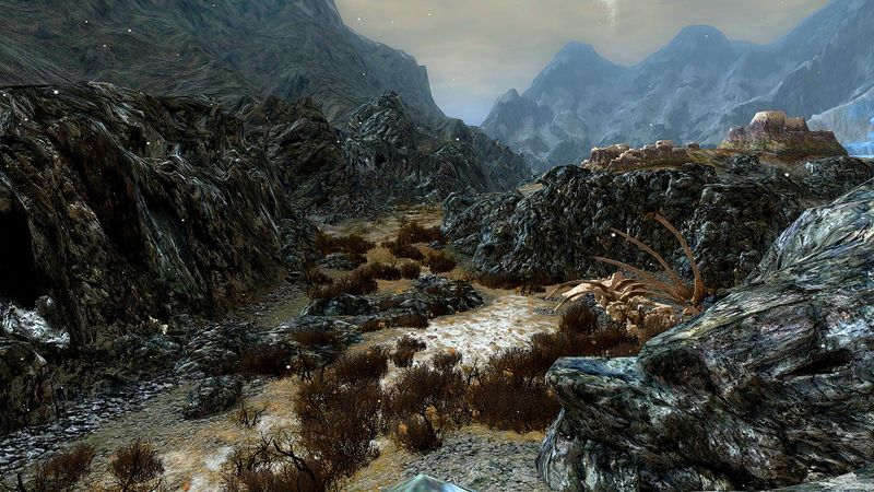 Située à l'extrême nord-est de la carte, cette zone cotoye celle de L'enclume. Dans notre jeu, cette "enclume" nous protégeant des forces du mal, s'est fissurée et laisse sortir des dragons. Cette lande desséchée est un endroit pour les objectifs de plusieurs quêtes.