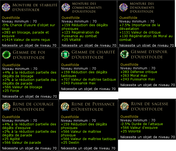 Six runes sont également disponibles dans les instances de la Cour de Seregost et des Geôles de Naerband :
