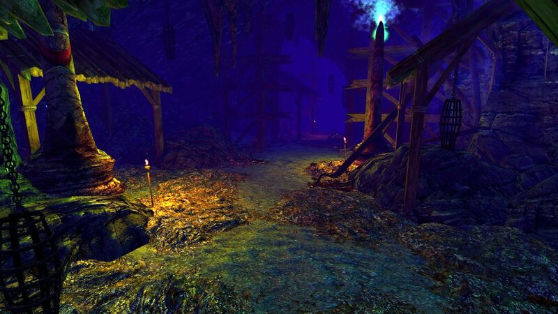 Une grotte dont l'entrée se trouve à 52.1 N, 74.1 O et à flanc de colline. Encore une fois, et c'est étonnant, je n'ai pas trouvé de correspondance dans mes dictionnaires pour le nom de cette grotte. Vous l'aurez compris avec la photo ce n'est pas ici que l'on va trouver un camp amical. Non, c'est juste un lieu de quête et on n'y revient jamais à par pour une mission répétable de temps en temps.