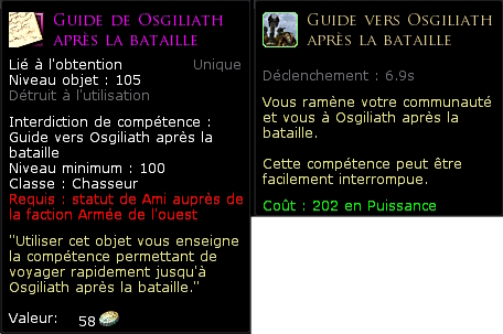 Cette compétence est disponible dès le niveau 45. Elle vous ramène dans l'enceinte de Carn Dûm.