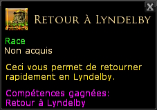 Cette compétence s'obtient automatiquement dès le niveau 22. Elle ramène auprès des écuries de Grand'Cave.