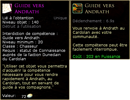 Elle nécessite le statut de Connaissance auprès de la faction des "Dunedain du Cardolan", coute